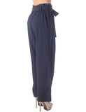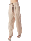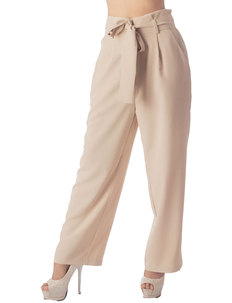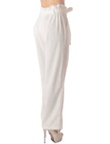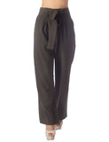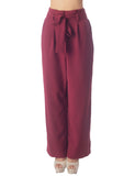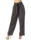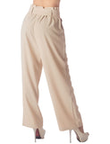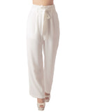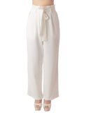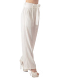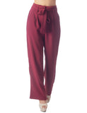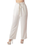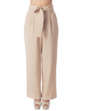 iB-iP Women's Bow Belt High Waist Cozy Casual Relaxed Wide Leg Pants